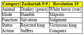 The juxtaposition of Zechariah 9:9 and Revelation 19 does not present two different Messiahs, but one Messiah in two phases of redemptive history.